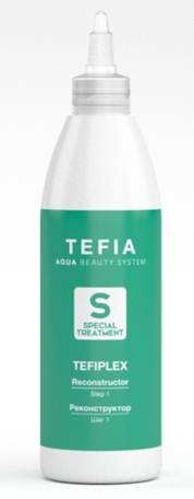 "Реконструктор" Шаг 1 Tefiplex - это активная жидкость, создающая «новые связи» и защищающая существующую внутреннюю структуру волоса. Придает волосам силу и эластичность.